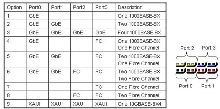,此項(xiàng)決定允許PICMG 3.1 組織把光纖信道連接加入到定義以太網(wǎng)連接的章節(jié)中。PICMG 3.1規(guī)范是一個(gè)很好的范例描述一個(gè)信道中的端口如何被使用來(lái)支持不同的傳輸協(xié)議。下表描述了一個(gè)信道中的4個(gè)端口在PICMG3.1定義的諸多協(xié)議中如何展現(xiàn)支持不同的傳輸協(xié)議配置。