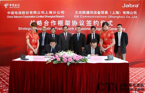 CTI論壇(ctiforum)6月23日消息(記者 楊佳林):上海—全球領(lǐng)先的創(chuàng)新耳麥解決方案提供商大北歐公司(GN Netcom)與中國(guó)電信上海公司(以下簡(jiǎn)稱上海電信)今日隆重舉辦了 “戰(zhàn)略合作框架協(xié)議簽約儀式”。上海電信資深經(jīng)理花銳強(qiáng)、大北歐公司亞太區(qū)總裁Mark Leigh,及雙方公司高層領(lǐng)導(dǎo)共同出席了此次慶典。Mark Leigh先生還代表了大北歐公司將Edouard Suenson先生——“將電報(bào)引入中國(guó)的丹麥人”的雕像捐贈(zèng)給上海電信博物館,見(jiàn)證了中國(guó)與丹麥源于19世紀(jì)末在通信方面的成功合作。
