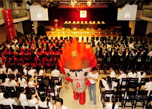 宣誓結(jié)束后,奧運觀眾呼叫中心主任張振良發(fā)表了熱情洋溢的講話,對所有京外志愿者的到來,表示熱烈的歡迎,對志愿者如何進入未來的奧運服務提出了六點希望。莊嚴的誓師大會,在齊聲高唱《歌唱祖國》的歌聲中勝利結(jié)束。