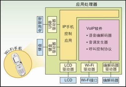 在這些設(shè)計中,一般的人機界面(MMI)以及VoIP通話控制功能使用傳統(tǒng)的應用處理器(ARM、MIPS等),而DSP則用于語音到數(shù)據(jù)包到語音的轉(zhuǎn)換。此方法在便攜設(shè)備的設(shè)計中暴露出很多缺點。
