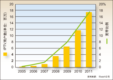 截至2011年,中國的IPTV用戶將達(dá)到了170萬,但是這一預(yù)測的前提是中國政府鼓勵電信和廣電部門進(jìn)行競爭,而且市場上活躍著大批內(nèi)容供應(yīng)商。但是這兩點目前還不確定。