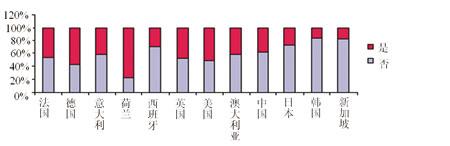 此外,還有一些被調(diào)查者表示愿意接受廣告以換取手機電視和電影大片。對于兩種不同的業(yè)務,用戶對這一問題的反應相似。在各個國家中,荷蘭用戶的接受比率較低;在歐洲,西班牙與意大利的接受程度很高;在亞洲,日本、韓國和新加坡的接受比率也很高。(見圖7)