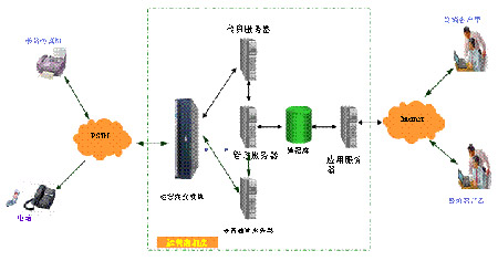 - 數(shù)據(jù)庫(kù)服務(wù)器(2臺(tái),1U,利舊): 連接到公網(wǎng)/內(nèi)網(wǎng)上。儲(chǔ)存所有傳真、語(yǔ)音業(yè)務(wù)的數(shù)據(jù)。
