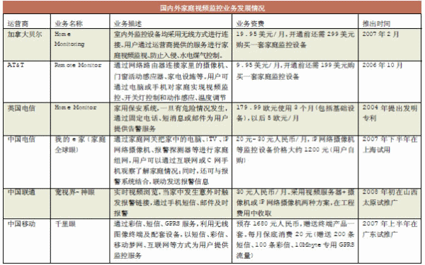 雖然數(shù)字家庭的全面實現(xiàn)還需要相當(dāng)漫長的過程,但是安防報警、視頻監(jiān)控技術(shù)將會最先在數(shù)字家庭中得到應(yīng)用。目前國內(nèi)家庭監(jiān)控市場還處于起步階段,然而3G的高帶寬將開辟家庭視頻監(jiān)控新時代,并將催生出巨大的市場商機(jī)。