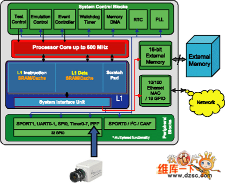 由于同時具有網(wǎng)絡(luò)、控制和信號處理功能,ADSP-BF537能夠在諸如視頻監(jiān)控、遠程檢測(使用ADC和DAC進行測量)和IP視頻等領(lǐng)域?qū)崿F(xiàn)低成本、高性能的應(yīng)用。
