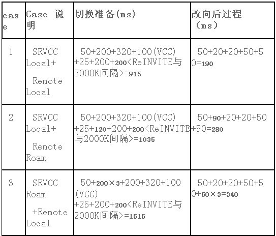 綜合2.2節(jié)的詳細詳細流程描述,分析結果表明,從切換時延看,SRVCC導致用戶通話中斷的時間主要是由于IMS核心網(wǎng)過程導致的,其主要原因是需要到遠端終端做媒體面更新,從典型網(wǎng)絡配置的測試值看,該部分時延較長(約200ms~500ms),而且變動較大,如果考慮到遠端終端的漫游情況及媒體處理能力,該時延還會大大增加,因此基本無法滿足語音業(yè)務實時性的要求;而在空中接口的中斷時間從邏輯上看,和2G/3G切換的時間相當(90ms~200ms),根據(jù)中國移動網(wǎng)絡部署經(jīng)驗看,該段時延的性能基本可以滿足部屬要求。