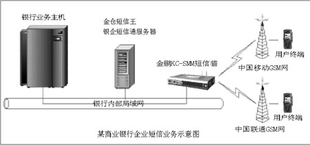 2004年7月,某地級市商業(yè)銀行采用了金鵬KC-SMM短信貓和“金倉短信王銀企短信通解決方案”軟件搭建了企業(yè)級的短信服務(wù)體系。鑒于業(yè)務(wù)量并非很大,所以盡管整個商業(yè)銀行有近三百個辦公網(wǎng)點(diǎn),在設(shè)備上該商業(yè)銀行仍然只采用一套軟硬產(chǎn)品。“金鵬的短信平臺產(chǎn)品目前在北方鋪開的時間并不長,所以在價格上有一定的傾斜,我們商業(yè)銀行購買的產(chǎn)品,價格比較便宜。”該商業(yè)銀行信息部某負(fù)責(zé)人說。