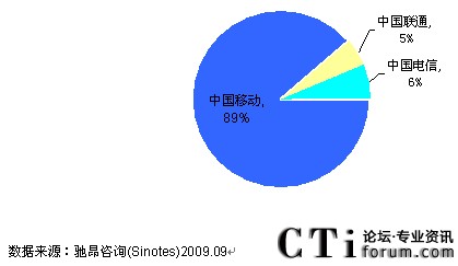 而從市場(chǎng)份額來(lái)看,中國(guó)移動(dòng)以超過(guò)80%的市場(chǎng)份額占居第一;而中國(guó)聯(lián)通和中國(guó)電信的市場(chǎng)份額僅為5%和6%左右。