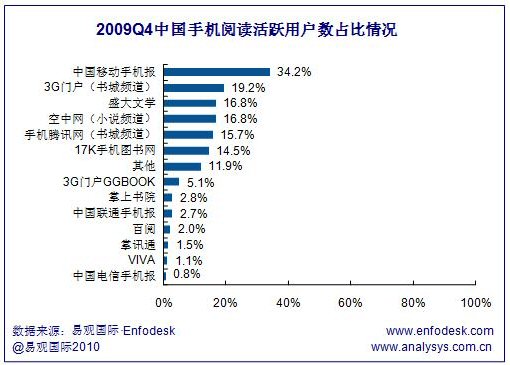2009年Q4中國手機閱讀市場用戶活躍度進一步提升