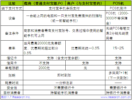 ④ 可用支付寶手機條碼支付的消費者,必須同時滿足擁有智能手機、手機內(nèi)安裝有支付寶客戶端以及注冊有支付寶賬號三個條件,這也間接導(dǎo)致潛在用戶規(guī)模相比POS機偏小。