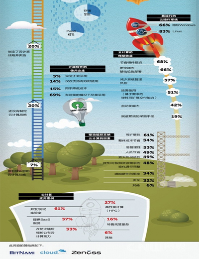 此項(xiàng)調(diào)查指出,在他們調(diào)查的所有云部署項(xiàng)目中,完全不使用開源軟件的云項(xiàng)目只有3%,而69%的云項(xiàng)目在可能的情況下均采用了開源軟件。