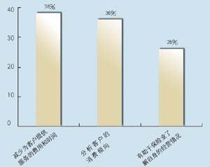 關(guān)于所應(yīng)用的CRM類型,有5家是呼叫中心,5家是分析型,7家是運(yùn)營型,2家是屬于大型企業(yè)CRM。其中13家擁有動態(tài)客戶數(shù)據(jù)庫,占到68.4%。這其中又有42%利用數(shù)據(jù)庫作客戶記錄,26.3%作為客戶支持使用,15.7%用作統(tǒng)計分析,另有16%作為市場推廣。保險公司與客戶聯(lián)系的方式,從重要性來看依次為:面對面\電話\網(wǎng)絡(luò)\傳真,這說明保險公司對于與客戶進(jìn)行人性化交流的重視。在問到CRM的主要作用時,有5家表示使用CRM有助于保險業(yè)了解自身的經(jīng)營情況,幫助公司準(zhǔn)確地發(fā)現(xiàn)贏利客戶和具有贏利潛力的客戶,有7家認(rèn)為使用CRM有助于分析客戶的消費(fèi)傾向,有7家認(rèn)為使用CRM有助于優(yōu)化信息和資源管理。在問到是否愿意為像CRM系統(tǒng)這樣的咨詢或服務(wù)付費(fèi)時,有11家表示愿意,占到57.8%。