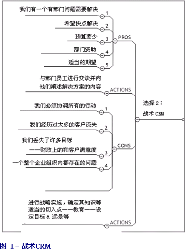 換言之,它是一種戰(zhàn)術(shù)性的還是戰(zhàn)略性的需求?許多企業(yè)喜歡在一段時間內(nèi)解決某個問題或困難。然而這種戰(zhàn)術(shù)性的方式很難為企業(yè)帶來競爭上的優(yōu)勢,盡管它有可能會改善部門的效率。究竟我們要在CRM之路上走多遠?想要知道答案的話可以看一下圖1。從頭開始,問問自己:它是一個具有明確定義和目標(biāo)范圍的部門需求嗎?如果真是這樣,那么預(yù)算也應(yīng)該相當(dāng)有限,因為其它業(yè)務(wù)部門決不會遷就。然而你很可能會發(fā)現(xiàn)你的部門問題就是企業(yè)與客戶及市場脫離的征兆。如果情況的確如此,那么你就要好好地努力深化CRM并取得更為廣泛的支持——尤其是CEO,因為你有許多關(guān)于客戶選擇的問題要有賴于他。