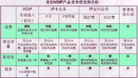 比業(yè)內(nèi)其他多種IP電話更具價(jià)格優(yōu)勢。每個(gè)長途呼叫無論是否建立成功,都不收取本地市話費(fèi)用。對于國內(nèi)目前話務(wù)量集中的國際間通信,采用的資費(fèi)標(biāo)準(zhǔn)相對其他運(yùn)營商具有價(jià)格優(yōu)勢。對于企業(yè)的Intranet Call,由于企業(yè)間不產(chǎn)生話費(fèi),更能夠節(jié)省大量的話務(wù)開支。