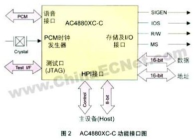 作為本系統(tǒng)中的核心部分,語音處理采用以色列audiocodes公司生產的專用多通道語音處理芯片ac4880xc-c。它具有以下特點: