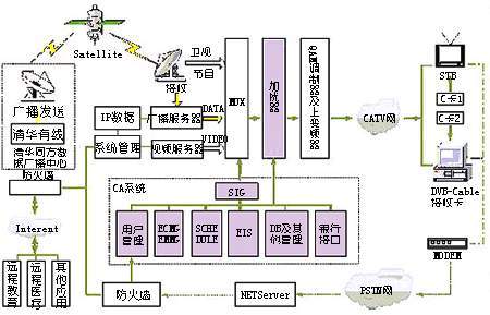 目前很多廠商都在研究基于有線電視網的增值業(yè)務平臺方案。經過專家分析,未來數字電視增值業(yè)務平臺的核心,是有條件接收系統(tǒng)(CAS),它關系到全平臺的系統(tǒng)安全和信息安全,該系統(tǒng)具有較高的技術難度和復雜性,且目前投入運行的全是國外系統(tǒng)。為了解決自有知識產權的有條件接收系統(tǒng),滿足蓄勢待發(fā)的國內市場的需求,清華同方組織開發(fā)了全數字的有條件接收系統(tǒng)。